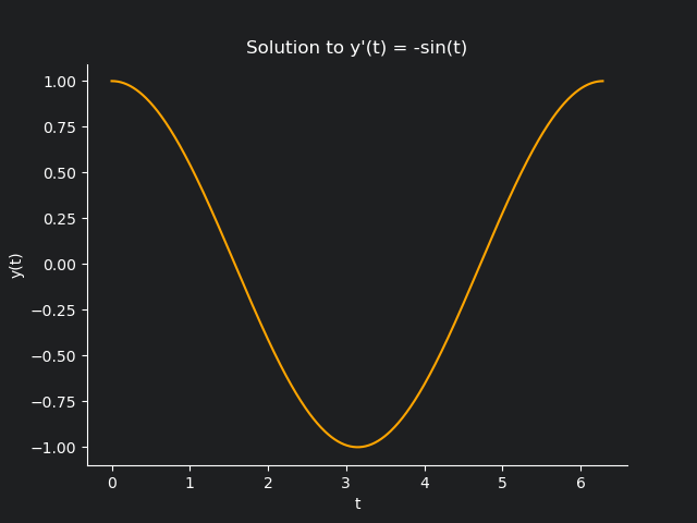 Here’s a sample code for solving $y’(t) = -\sin(t)$, with the initial condition $y(0)=1.$